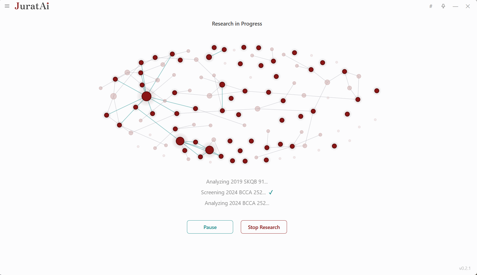 A live visualization shows every case being searched, screened, and analyzed as Jurat works its way through the issue in real time.